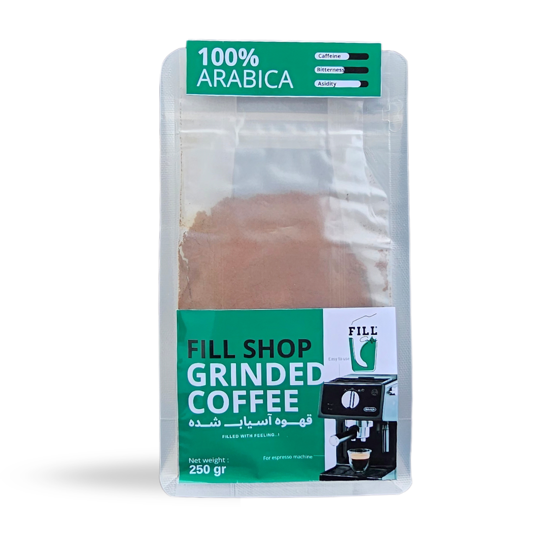 قهوه اسپرسو 70%عربیکا 30%روبوستا آسیاب شده برای اسپرسوساز خانگی